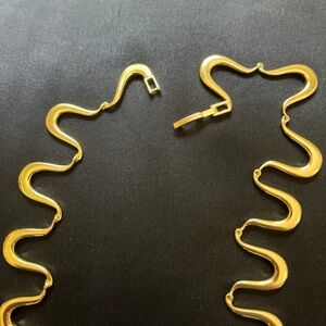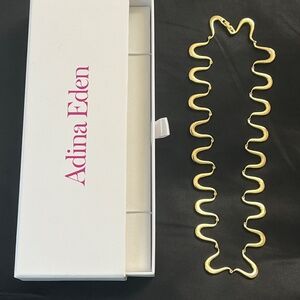 Adina Eden deadstock Thin Squiggle Necklace. 16 inches long, 14K gold over brass, stamped with brand’s signature butterfly at closure. Includes branded gift/storage box. Never worn. (Original retail price: $98)
