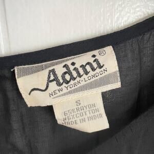 Adini Mirror Embroidered Black Tunic Top S Rayon Cotton Boho Sheer Festival Art
