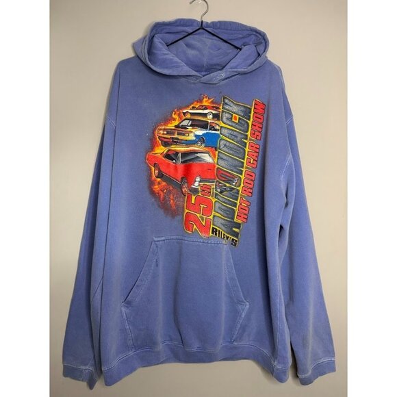 Adirondack Y2K Graphic Distressed Hoodie Size M 25th Hot Rod Car Show Streetwear