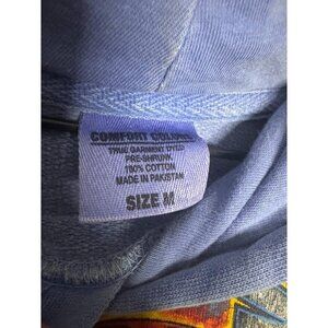 Riley's Size M Adirondack 25th Hot Rod Car Show Y2K Graphic Distressed Hoodie is a vintage-inspired piece perfect for hot rod car show enthusiasts. Made of comfortable cotton jersey material in solid blue color, this hoodie features a round neck, long sleeves, and a drawstring closure for a customizable fit. With a theme that combines cars, nature, and outdoor activities, this pullover hoodie is ideal for men who enjoy walking, cycling, skiing, skateboarding, racing, and hiking. The ODM Premium Goods brand ensures quality and style for this unique street machine of a hoodie.