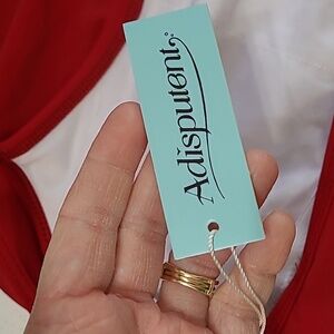 Adisputent women's swimsuit size Small. Ruffles on the front side only. Adjustable shoulder straps. Burgandy wine color. There are openings for cup inserts but are not included with the suit.