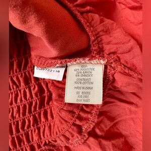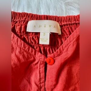 This vibrant orange sleeveless top by Adiva features charming ruffled straps and a smocked bodice, offering a feminine and romantic look. The lightweight fabric and ruffled peplum hem make it perfect for warm weather, while the intricate eyelet pattern adds a touch of elegance.