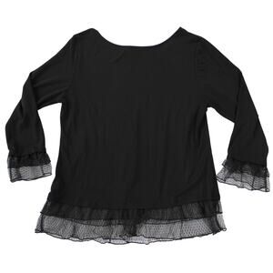 Adiva Black Ruffle Mesh Trim Top L Bell Sleeve Tunic Stretchy Pullover