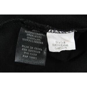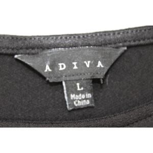 Elegant black long sleeve top by Adiva in size Large. This lightweight pullover tunic features layered mesh ruffle trim on the bell sleeves and hem, giving it a dressy, feminine look. Constructed from a stretchy, soft fabric (92% polyester, 8% spandex) with 100% polyester contrast mesh. Approximate flat measurements: 21" pit to pit, 27" total length. Style# B2A3161K149AB. Made in China. RN# 74883.