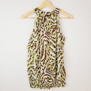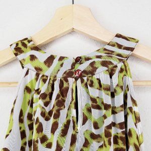 Adiva Blouse Leopard Print Pleated Sleeveless sz S