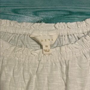 Elegant cream blouse with intricate purple lace. Perfect for any occasion. EUC