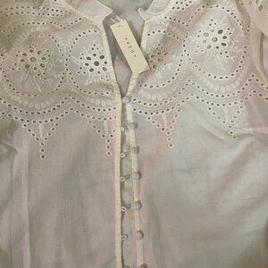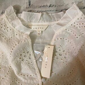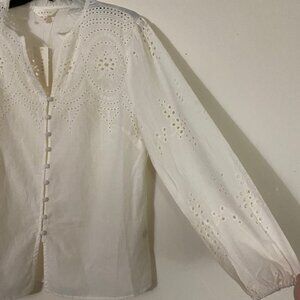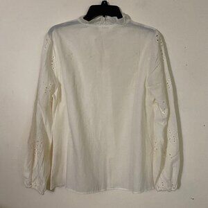Adiva Ivory Eyelet Button Front 100% Cotton Long Sleeve Top
