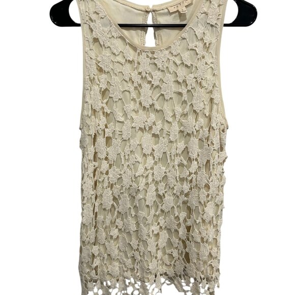 Adiva Lace Overlay Polyester Lining Crochet Keyhole Sleeveless Top Size L Boho