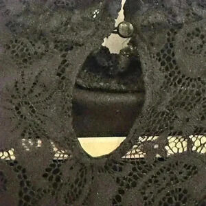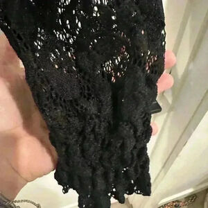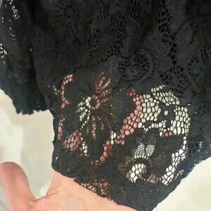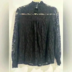 Size medium, the blouse has a camisole underneath, and it is stretchy