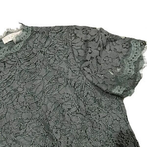 Adiva Olive Green Lace Scallop Trimmed Top M