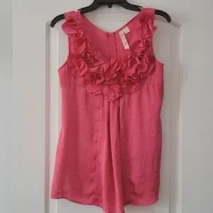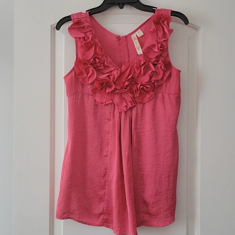 Adiva ruffle shell. Color is a pink coral. Very soft. Zipper back. Length 28 width 14 Fabric Polyester