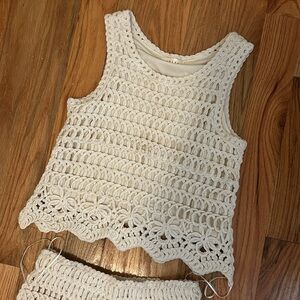 NWT! This set has never been worn. Oatmeal colored, crocheted (lined) two piece skirt set