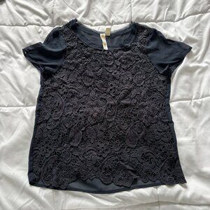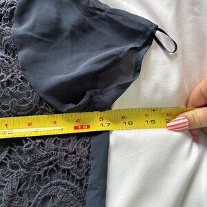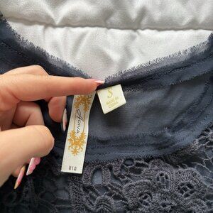 Adiva Sheer Lace Overlay Navy Blue Top Blouse Womens Size Small Vintage Y2K 90s
