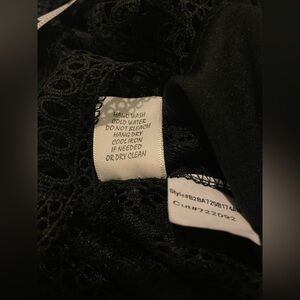 Like new with no signs of wear or defects. Size medium Adiva black lace blouse lined with a black tank. Kole button closure on back. Armpit to armpit 18” and centerback length is 23”. Tote 19.
