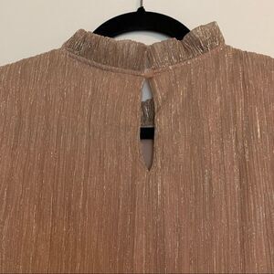 Muted pink blush shimmery top sleeveless and mock neck with key hole in back and button closure