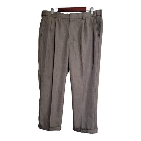 Adjust A Band Pleated Pants Brown 38S Polyester Stretch Waistband
