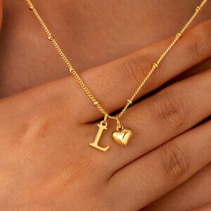 Adjustable 14K Gold Plated Heart Initial Pendant Necklace — Elegant and meaningful jewelry.
