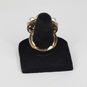 Adjustable Band Fashion Ring Size 6.5 Faux Diamonds Faux Pearls Faux Gold Band