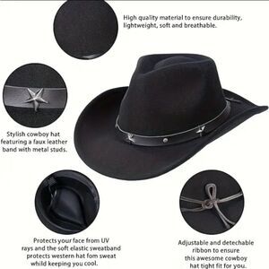 Adjustable Black Felt Cowboy Hat Unisex Western Style
