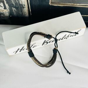 Adjustable Faux Leather Bracelet Black and Brown Bohemian Unisex