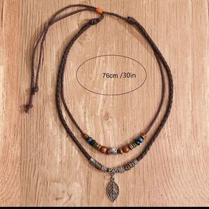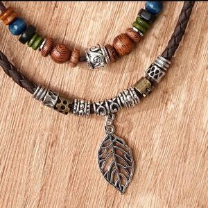 Adjustable Bohemian Necklace layered Leaf Wooden Bead
