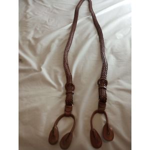 Adjustable Braided Button Suspenders Full Grain Cowhide Leather Brown Classic