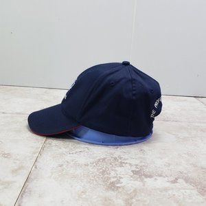 Hat is preowned, used. Material is still crisp & colors are still true. Does have inner discolored spot on front embroidery section, a speck on ear panel towards top. There a small dark smudge, about the size of a fingertip on the right underside of the bill which I could not get to show up in the photos. All other issues are shown & can be viewed in the photos.