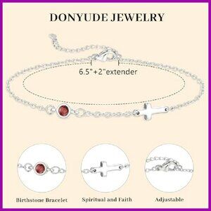 Style: Dainty link chain with cross charm and birthstone accent