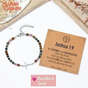 • Style: Features a delicate cross charm as a constant reminder of faith, with vibrant natural stone beads and a bead chain design. Presented in a gift-ready box with an engraved scripture card and blank message card.
