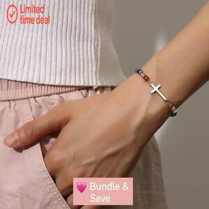 This elegant cross bracelet is designed as a meaningful accessory for everyday wear and special spiritual occasions. Its delicate charm and adjustable fit make it a versatile piece for personal devotion or as a thoughtful gift.