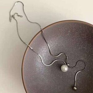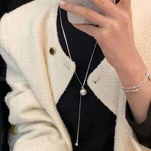 A stylish 70 + 5 cm adjustable sweater necklace featuring a sleek snake-bone chain paired with a 14 mm crystal imitation pearl. Modern and versatile, this trendy piece adds an elegant touch to any outfit and is perfect for women who love bold, fashionable accessories.