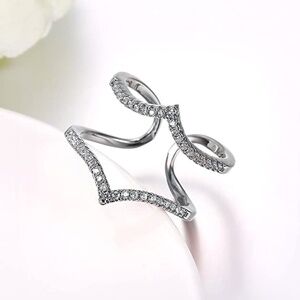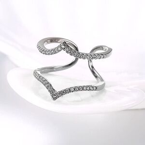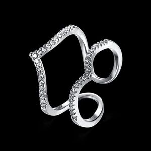 Adjustable Cubic Zirconia V Paving Open Platinum Plated Ring