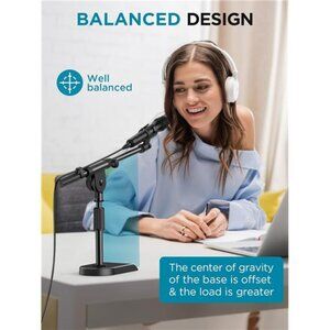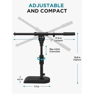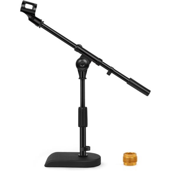 Adjustable Desk Microphone Stand, Weighted Base with Soft Grip Twist Clutch