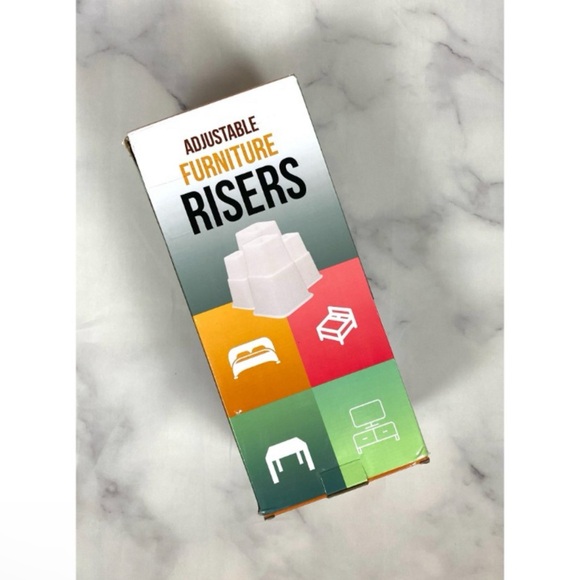 Set of adjustable furniture risers. Ideal for beds, sofas, and tables. Multi-color packaging.
