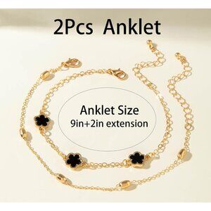 Elevate your summer style with these exquisite 14K gold-plated ankle bracelets. This set of two anklets features charming lucky flower and four-leaf designs, perfect for adding a touch of elegance to any outfit. Each anklet measures 9 inches with a 2-inch extension chain, allowing for a customizable fit. The separate lobster clasps ensure secure wear while making them easy to put on and take off. These layered anklets can be worn together for a trendy stacked look or separately for a more subtle accent. The delicate beadwork and gleaming gold-plated finish make these anklets an ideal gift choice for women who appreciate both style and versatility. Whether you're strolling on the beach or attending a special occasion, these ankle bracelets add just the right amount of sparkle to your ensemble.