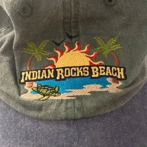 Adjustable baseball cap. Green and blue. “Indian rocks beach”
