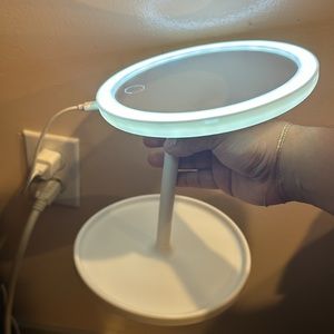 Adjustable LED light up vanity mirror with trinket dish. Includes USB cord as pictured (only the USB pictured) Charging block is NOT included****