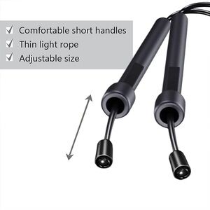 The jump rope features an adjustable design and comes in black color. It's suitable for gym and training activities, and the package dimensions make it a perfect fit for fitness equipment and gear. Whether you're a beginner or an experienced athlete, this jump rope is a great addition to your workout routine.