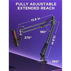 🧿Free Position Mic Arm: This professional microphone stand is fully adjustable in all parts with 360° base rotation for 135° back and forth extension, 180° arm shaft for up-and-down movement, and 270° metal adapter to freely position mics. It can be easily folded and pushed away for space-saving storage when it stands idle and pull it back for usage.