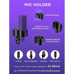 🧿Mic Compatibility: This mic arm stand allows diversity and compatibility, for it comes with a standard mic clip to fit for dynamic microphones like Shure SM58, Samson Q2U, Shure PGA48 and more, and a 5/8" to 3/8" adapter for Blue Yeti, Blue Snowball, Blue Snowball iCE, Hyper X QuadCast, SoloCast, Shure SM7B, MV7.