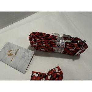 The DogWong Adjustable Multicolor Dog Leash with Bow is designed for medium-to large sized dogs. This leash features a stylish reindeer Christmas pattern and is adjustable to ensure a comfortable fit for your furry companion. The Christmas reindeer, gender-neutral design leash and bow is perfect for any dog owner looking for a fashionable and functional accessory to walk their pup. The color scheme is perfect for Christmas.