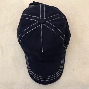 J8 Hat/Cap C Genderless Adjustable Hook & Loop Strap n/a Navy Blue hat with white thread accent Navy white thread accents cotton