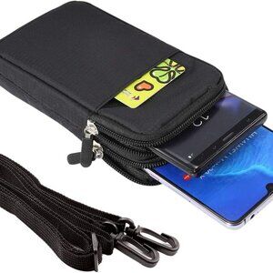 Features: Crafted from durable nylon, this sleek phone holster is lightweight, comfortable to touch, and wear-resistant. Includes a padded interior for extra protection of your electronic devices. It has multiple zippered compartments and a front pocket, ideal for storing credit cards, passports, cash, keys, or small personal items. The secure belt loop buckle measures 3.5 x 7.5 cm, making it easy to attach to belts, pants, or bag straps. Versatile design with an adjustable, detachable shoulder strap allows it to double as a shoulder bag, crossbody, or purse—perfect for outdoor, sports, hiking, and climbing adventures.