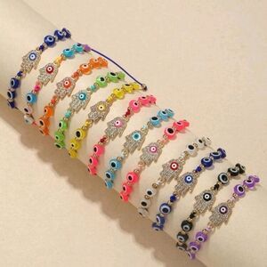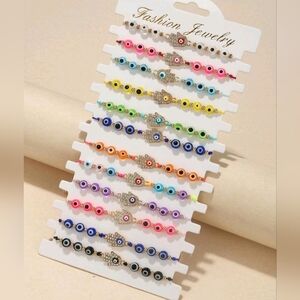 🔹️Adjustable Rhinestone Hamsa Evil Eye Bracelet 12 pack various colors