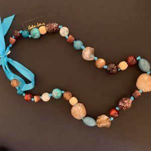 Never Worn. Cookie Lee Adjustable Ribbon Necklace. Multiple stones. Turquoise Ribbon.