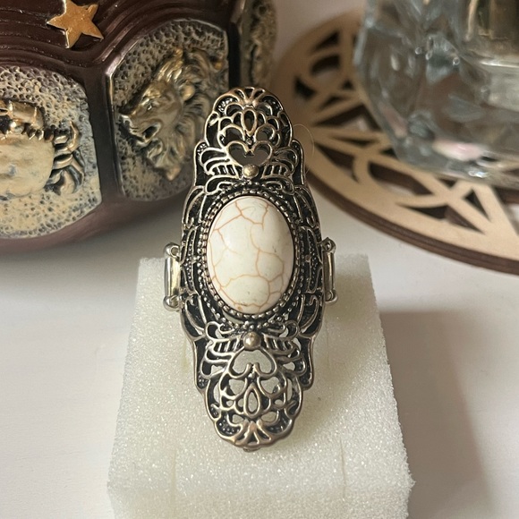 -Beautiful adjustable ring with white stone -Fairly used
