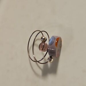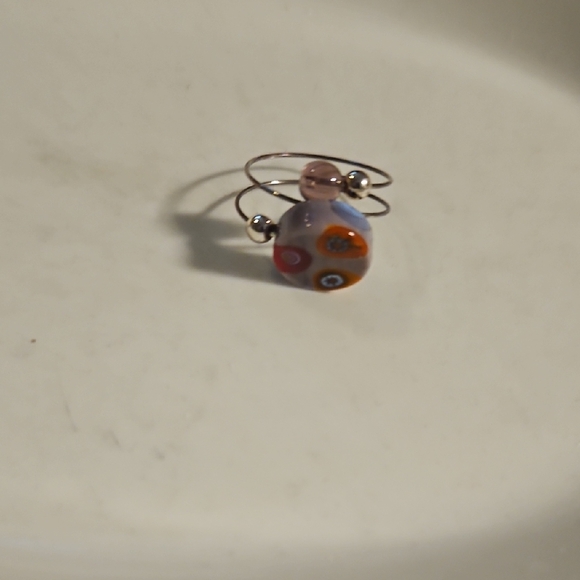 unique adjustable ring with colorful bead, and silver and gold accent beads. teens would love this ring as well