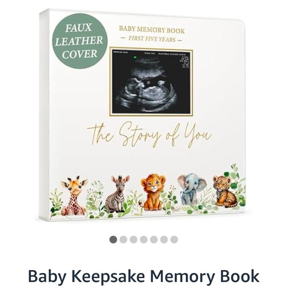 Capture precious moments with this baby memory book. Features an adjustable ring binder and six storage pockets. Perfect for keeping little keepsakes.
