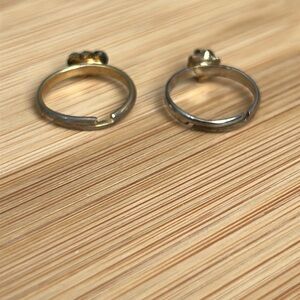 Both adjustable, one has yellow hearts and the other has a faux pearl. Great for kids to play dress up or to wear worry-free