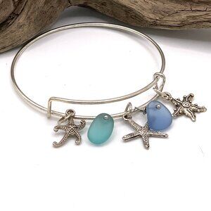 Adjustable Sea Glass and Starfish Silver Bracelet